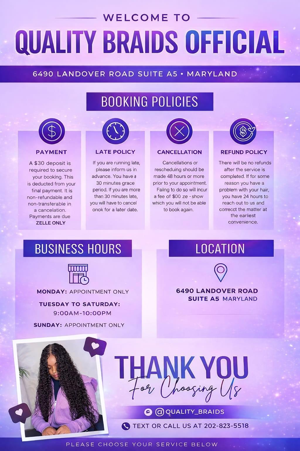 Quality Braid provided a luxurious experience that made me feel special. I will definitely be returning!Ready to Transform Your Look?